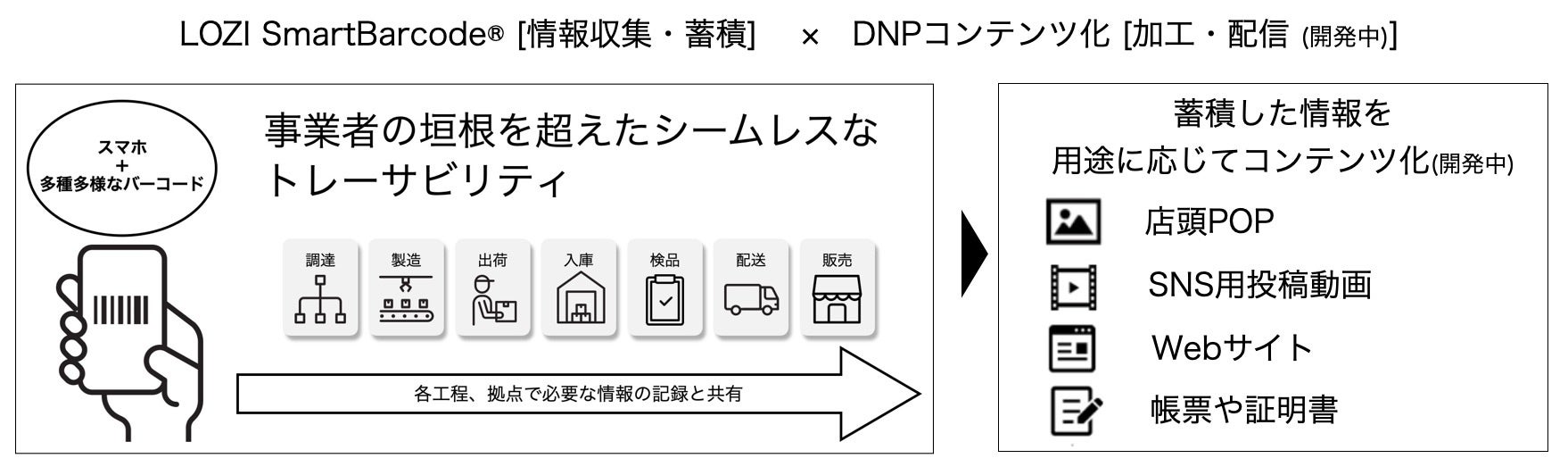 こうした課題の解決に向けて、LOZIとDNPは今回、「SmartBarcode」を活用して、「食の情報を必要なステークホルダーに正確に伝える」ことに加え、ICT活用による企業や生産者の情報蓄積や情報管理のDX化を支援します。これによって、食品産業等を活性化するとともに、農水産物の生産活動や食品メーカーの収益性を高め、従事者を増やすことなどに貢献していきます。