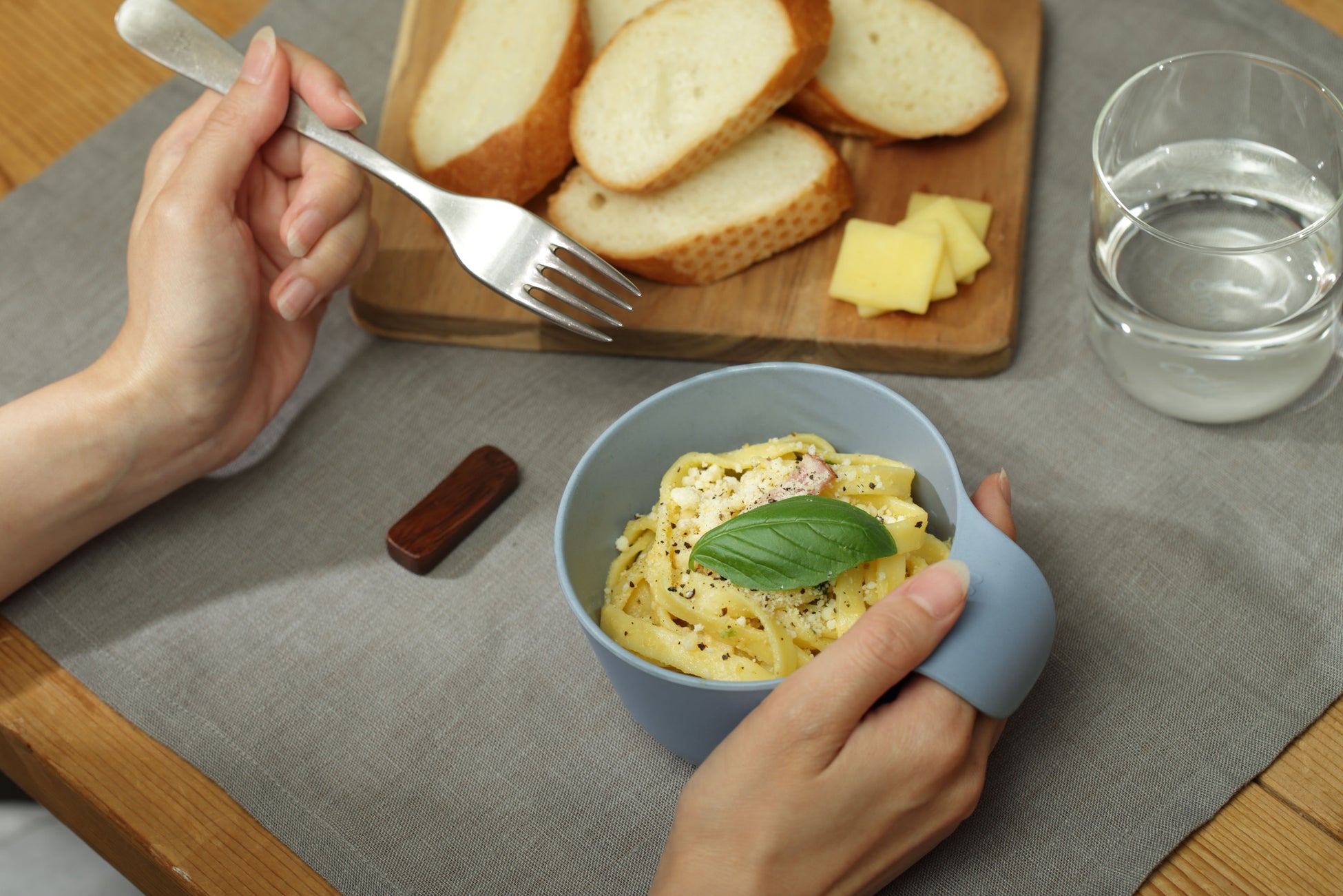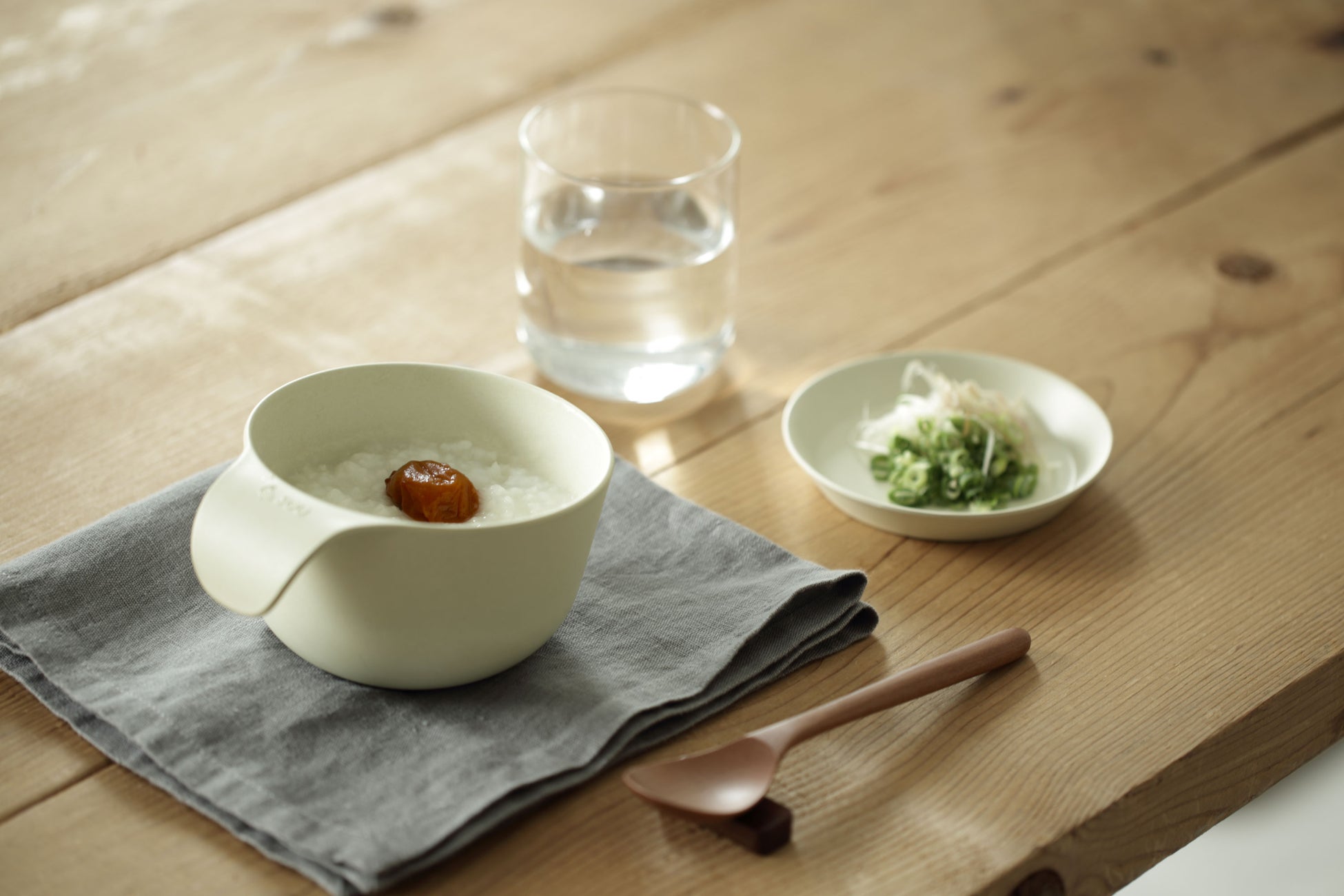 ごはんや汁物にぴったりの大きさで、少ない力でもしっかりお椀を支えられるハンドル形状。
