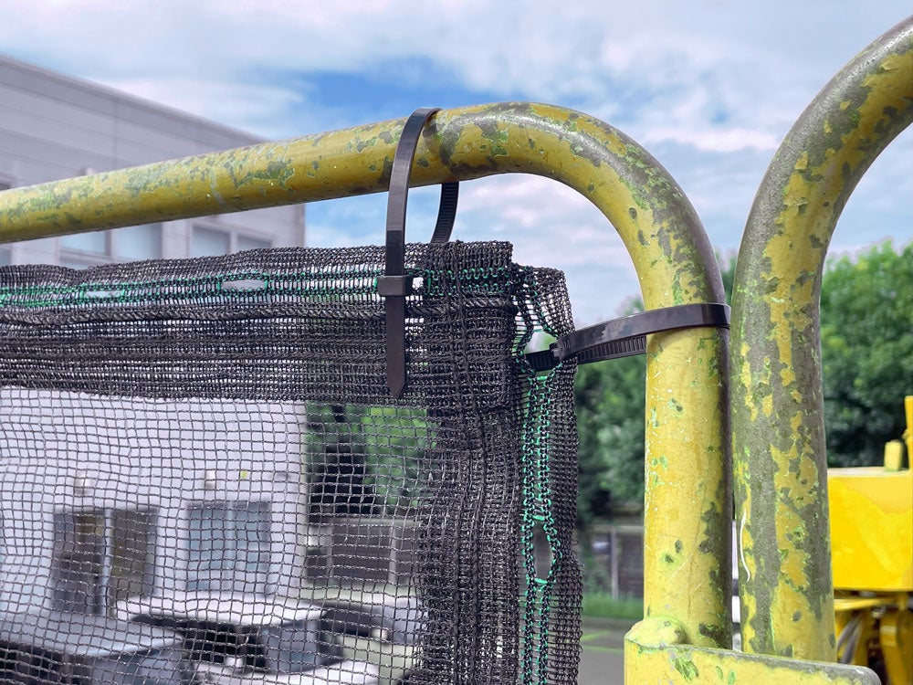 業界初採用(当社調べ)の特殊取付ベルトにより、安全帯のフックなどによる破損からネットを保護。繰り返しご利用頂ける安心の軽量ネットです。