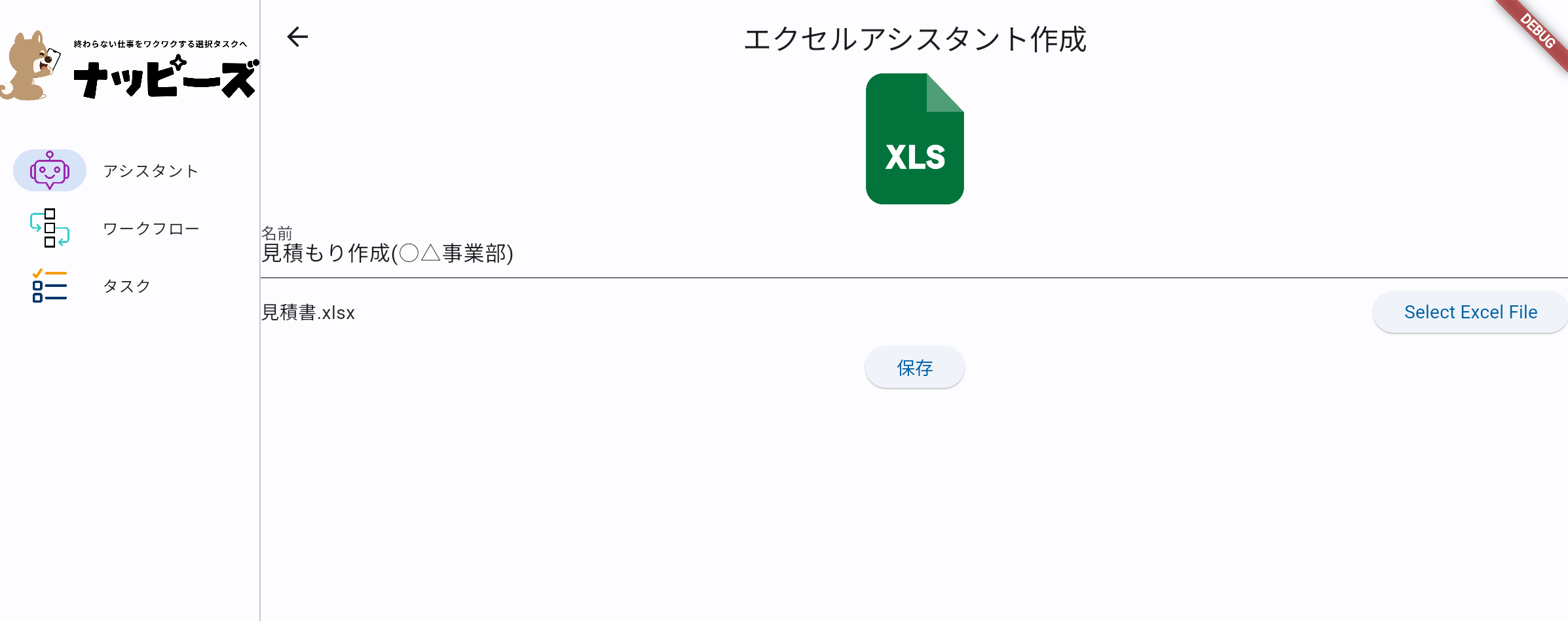 Excelファイルやパワーポイントファイルをアップロードするだけで、出力形式に合わせたAIアシスタントを作成します