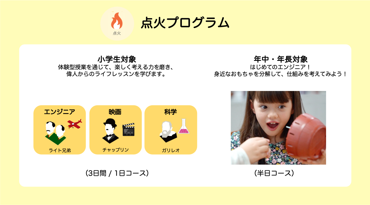 点火プログラムは好奇心と才能に火をつける探究型授業です。