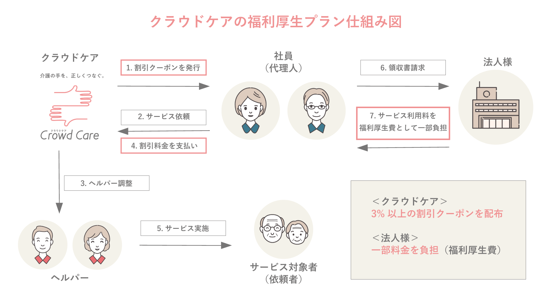 ネットで簡単に頼める訪問介護・家事・生活支援サービス「Crowd Care(クラウドケア)」を運営する株式会社クラウドケア(本社:東京都渋谷区、代表取締役CEO:小嶋潤一)は、この度、法人向けの福利厚生プランを8月18日(木)から提供いたします。また、同時に株式会社ガイアックス(本社:東京都千代田区、代表執行役社長:上田 祐司、証券コード:3775)へ当プランを導入し、ガイアックスに所属する社員と家族に向けて、介護保険外の訪問介護・家事・生活支援などのサービスを優待価格で提供いたします。