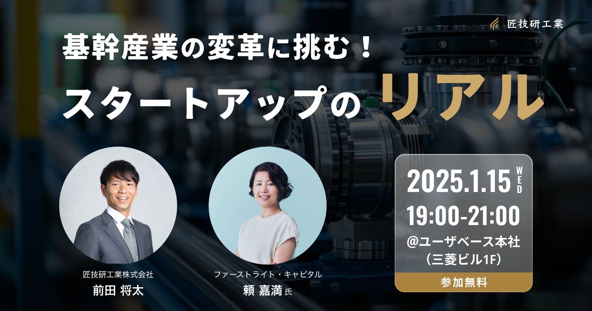 匠技研工業が描く未来ビジョンや、スタートアップで挑戦する醍醐味などを、起業家・投資家の両視点から赤裸々に語る、オフライン限定のイベントです。
