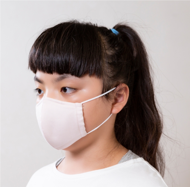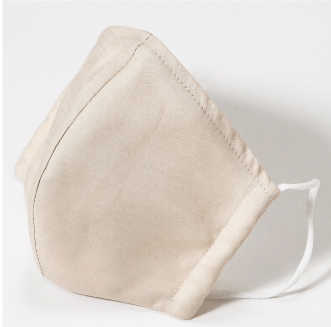 表面には高密度綿使用(Wクロス)、中に静電フィルターとしてポリエステルシフォンを使用し、肌に触れる面には、夏でも快適に着用できるように、接触冷感機能を兼ね備えたcoolガーゼを使用した三層構造です。
