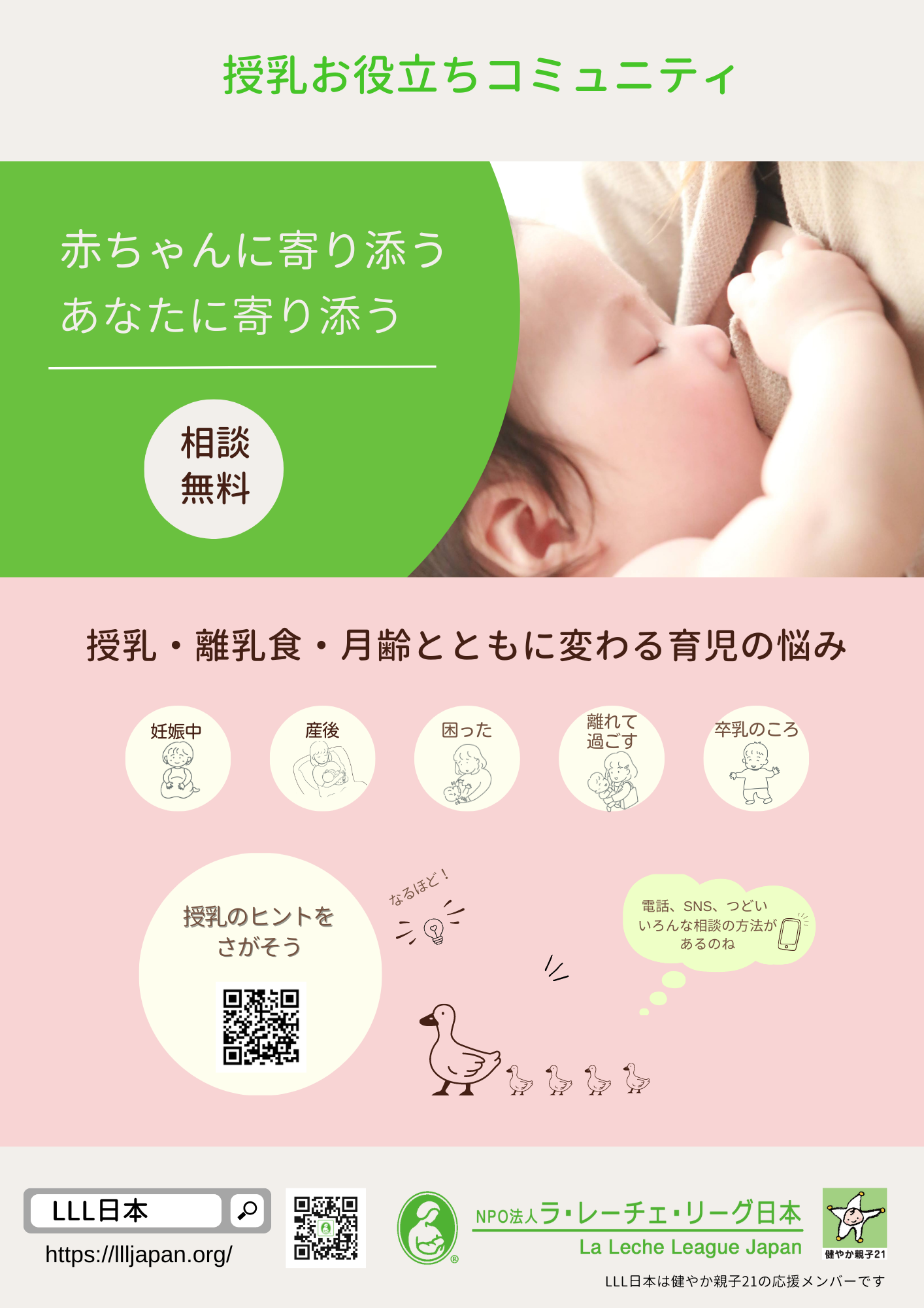 世界的な母乳育児支援団体ラ・レーチェ・リーグ・インターナショナルの認定リーダーによる授乳サポートを提供しているNPO法人です。