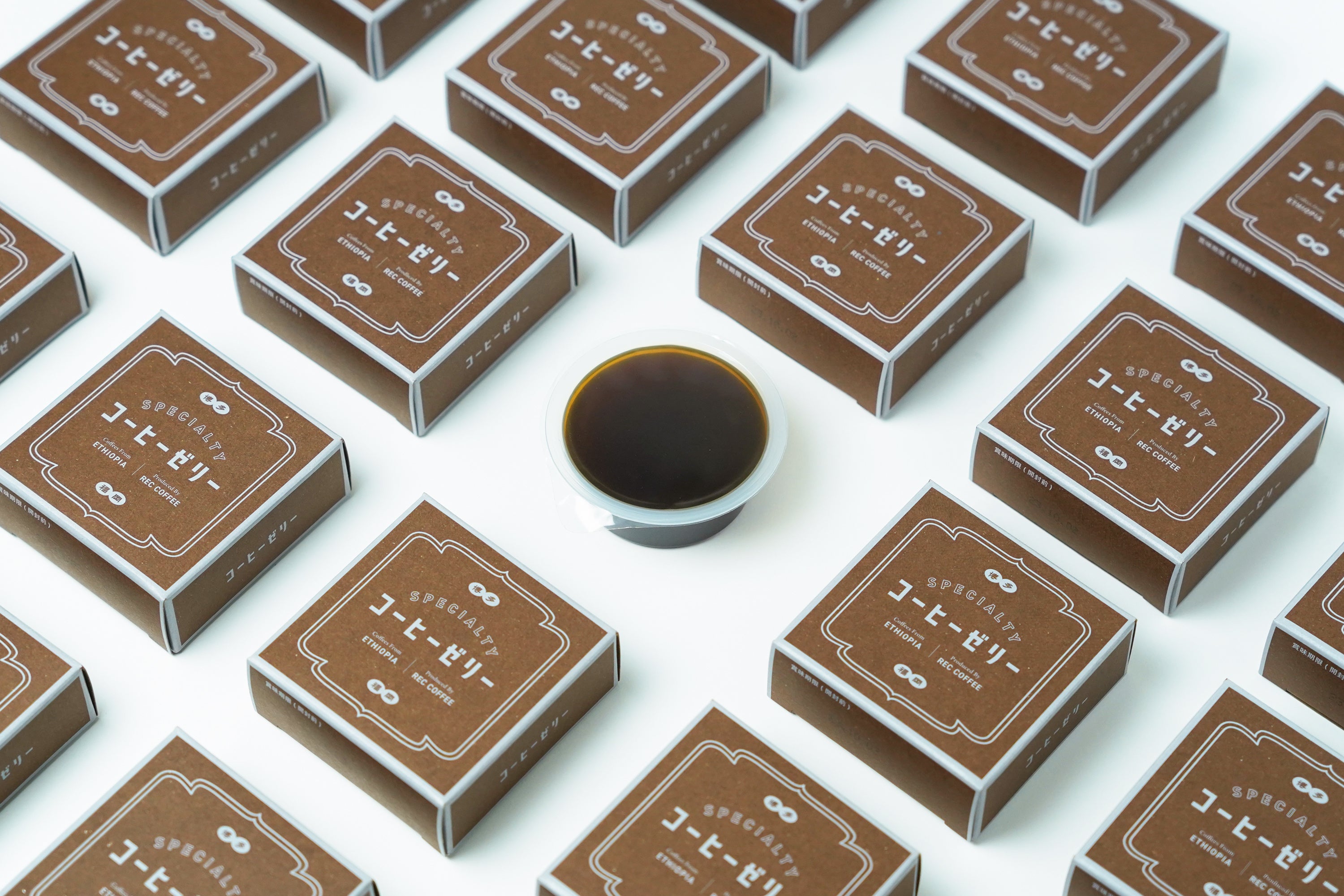 ギフトとしても人気の高いコーヒーゼリーなので、お土産や手土産でもお渡しできるようにパッケージングを行いました。昔から愛されるコーヒーゼリーのレトロな雰囲気とスペシャルティコーヒーを使ったという新しさを表現したデザインを施しています。