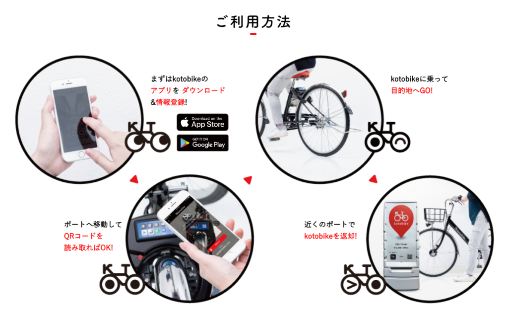 2019年にリリースしたkotobikeは、京都市内に約60箇所のポートを構える、国内唯一の自転車小売店がサービス設計・提供しているシェアサイクルサービスです。