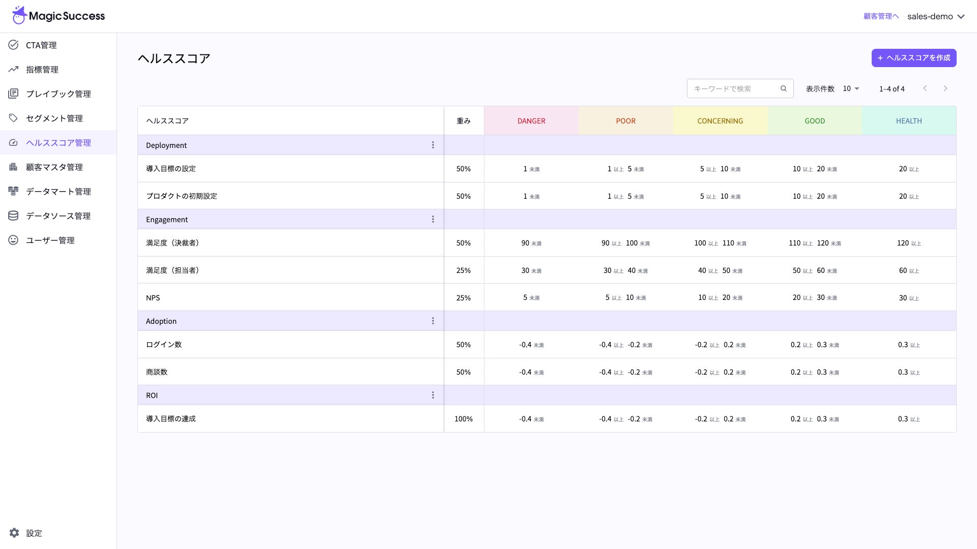 MagicSuccessのヘルススコア機能