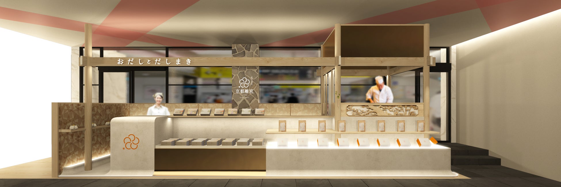 《京都駅に新スポット登場‼》だし巻きライブキッチン、焼き立てのだし巻きを購入するなら、京都駅でここだけ!日本初のおだしのテーマパーク京都離宮が京都駅に、本日オープン、出汁の魅力を届ける”新感覚の店舗”