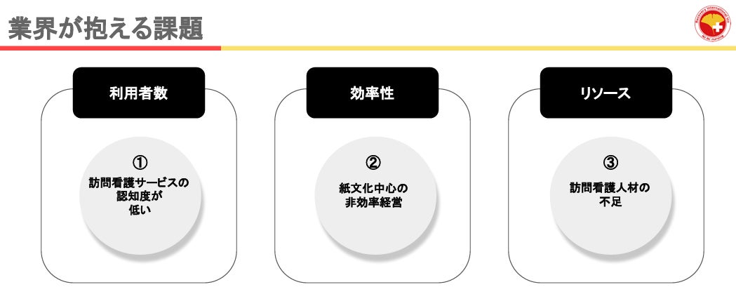 医療業界は紙文化が浸透しており、訪問看護業界においても病院で経験を積んだ医療職者が運営しているケースが多く、また、許認可の手続きは紙面で行う必要があるため、情報のクラウド化が進んでおらず、ペーパーレス化が進んでいない現状があります。