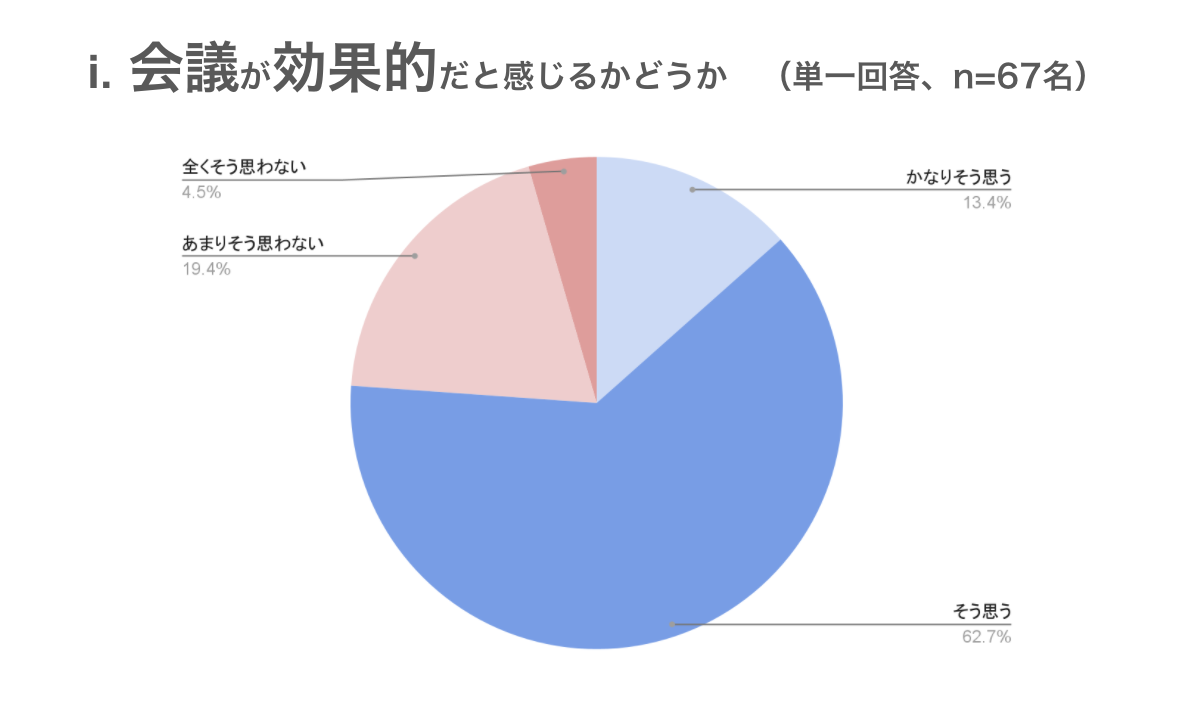 | 調査サマリー1:参加者のうち1/4が、会議を効果的でないと感じている |