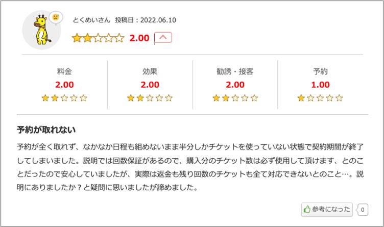 口コミID/投稿者名(ニックネーム)/会員登録の有無/投稿日時/商品ID/商品名/口コミタイトル/口コミ本文/評価(満足度)/サブ評価/紐づくタグ数/参考になったボタンクリック数/気持ちアイコンID