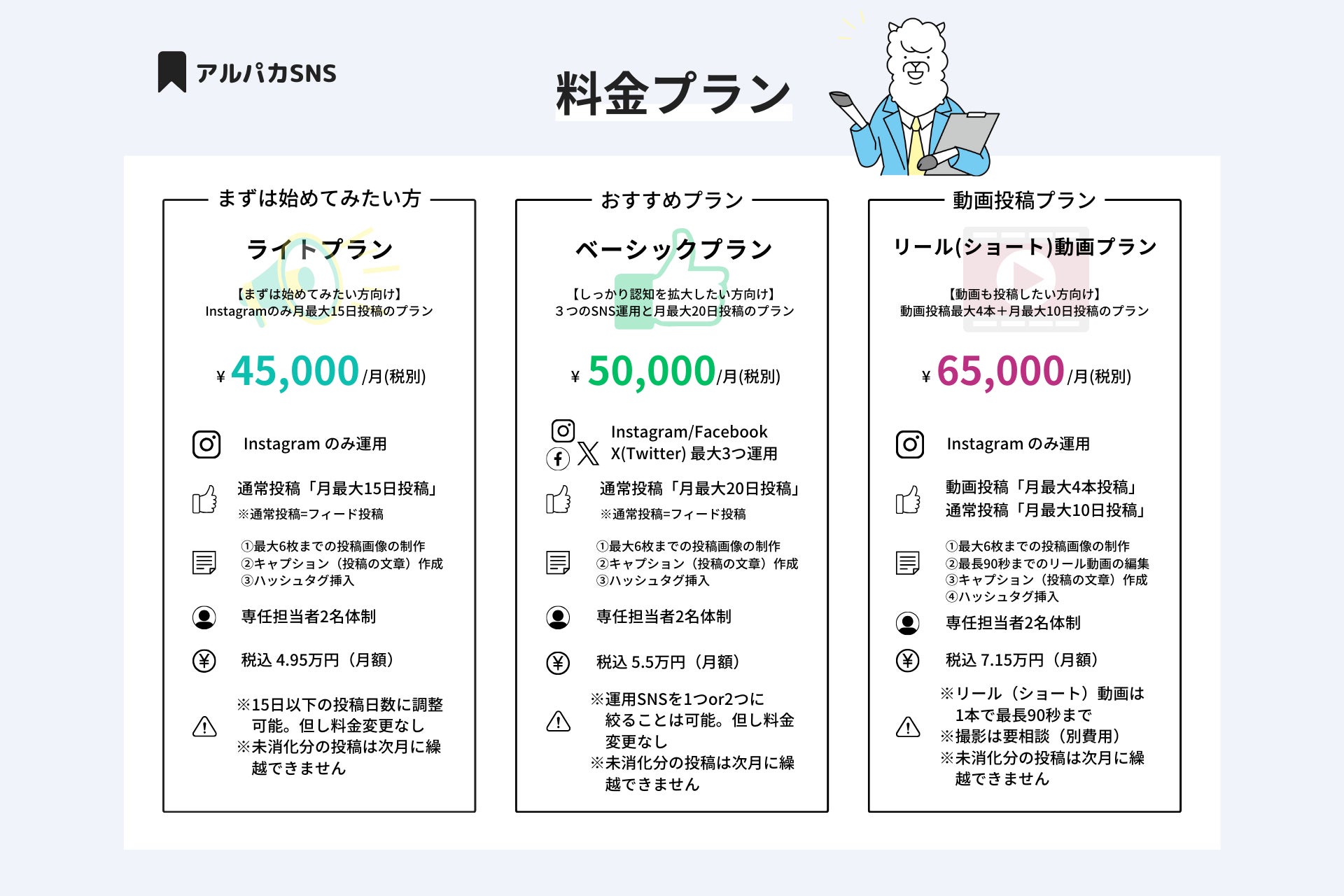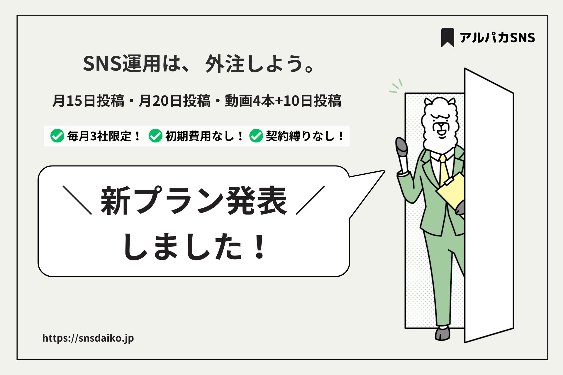 SNS運用は、外注しよう。月額5万円で月最大20日投稿のSNS運用代行サービス「アルパカSNS」のサービス内容がバージョンアップ(新プランに変更)しました!(ショート動画プランも追加)