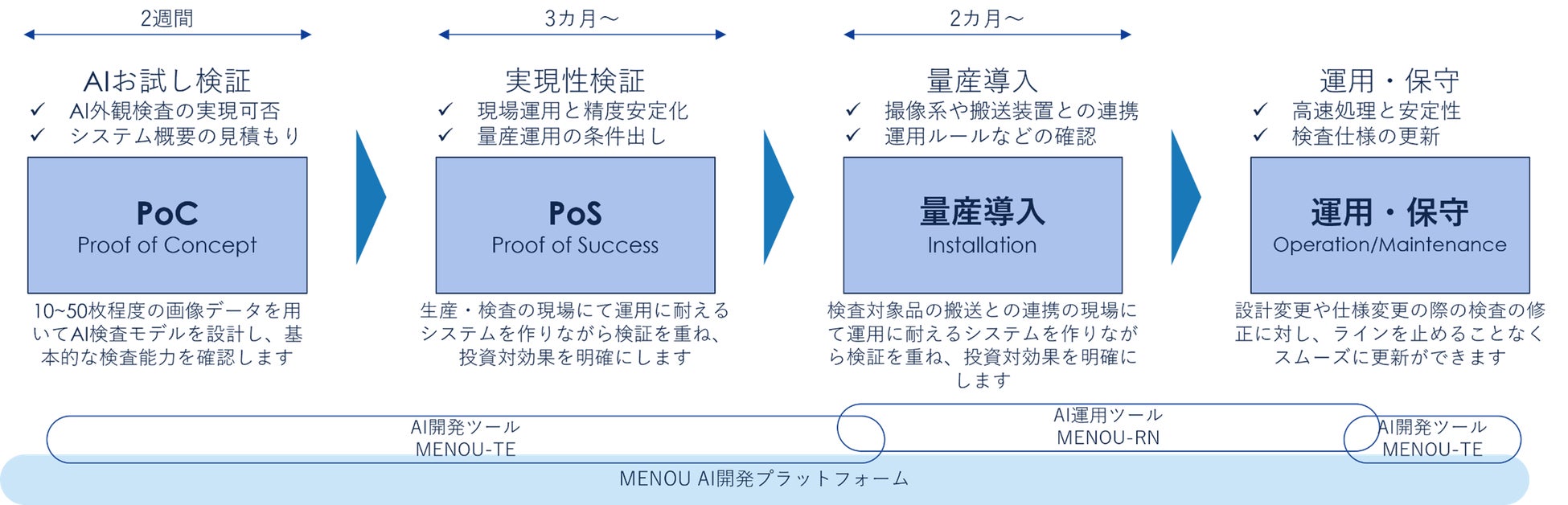 MENOUのAI開発プラットフォームおよび多数の実績を通して、PoCを短期間かつ無償でご提供することが可能になっています。