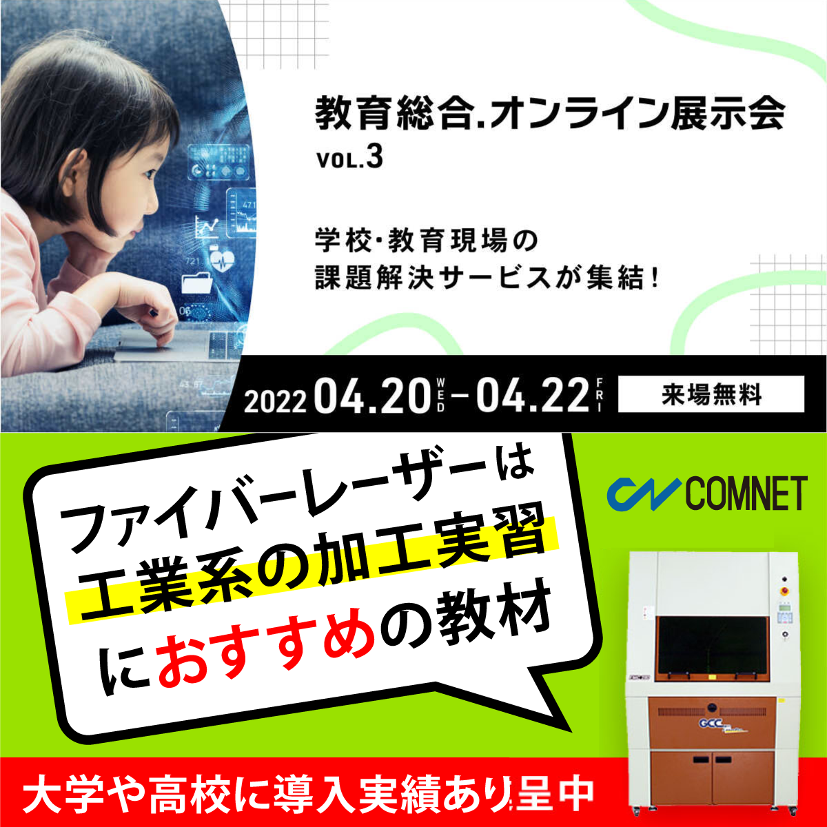 日々変化する教育現場で奮闘する教員、教育担当者に向けて、DMMオンライン展示会「教育総合.オンライン展示会 vol.3」に、【工業系・技術系の加工実習におすすめの教材】としてコムネットのファイバーレーザー「FMC280」を提案