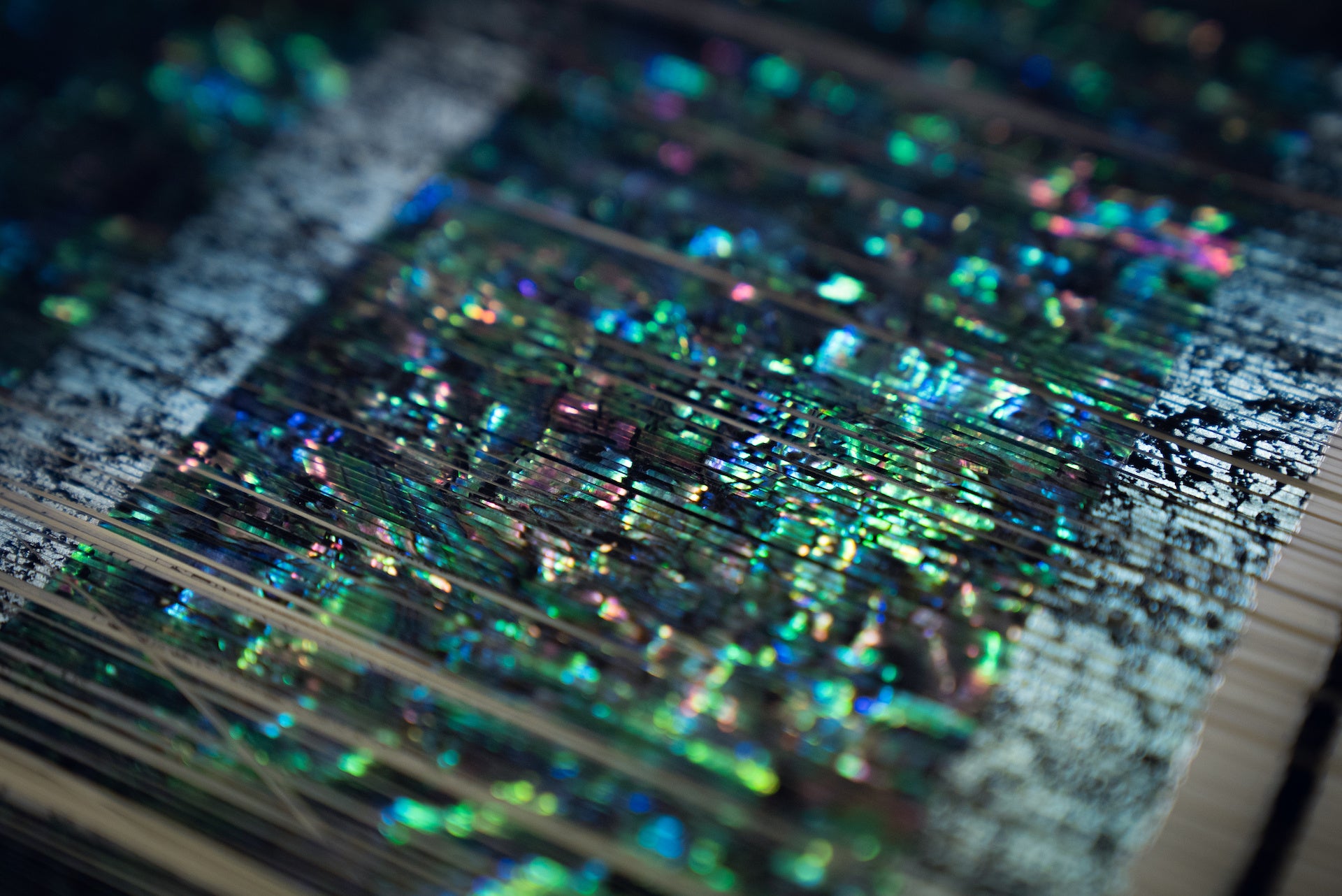 (画像)民谷螺鈿の螺鈿を裁断してつくられた糸 裁断は中島裁断所がおこなう