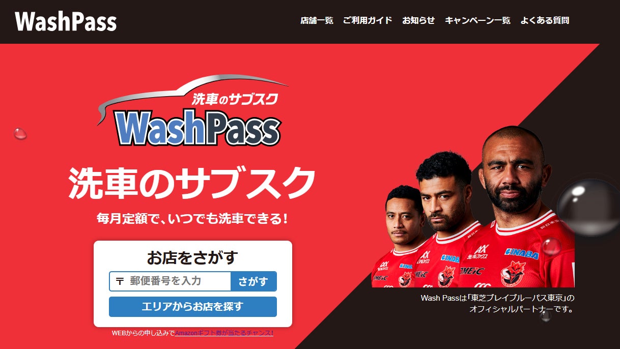 スマホアプリを使って月に何度でもセルフ洗車機が利用できる、洗車のサブスク『Wash Pass(ウォッシュパス)』を展開しています。