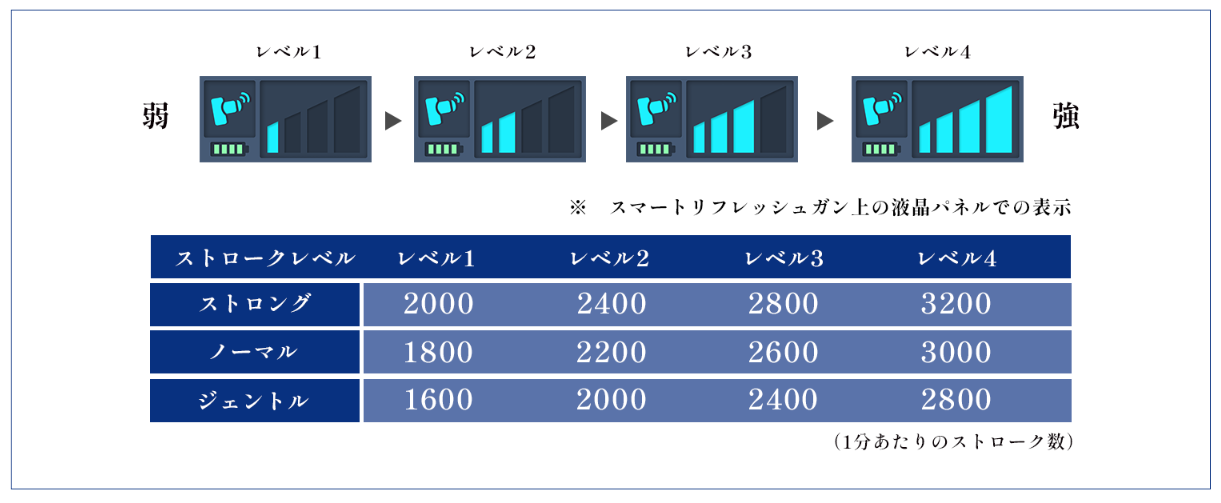 ・ 4段階の振動レベル&3段階のストローク強度を設定可能(全9モード)