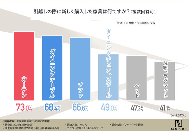 - 新しく購入する家具TOP3は「カーテン」「ダイニングテーブル」「ソファ」