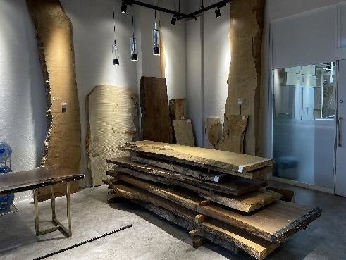 2021年よりインテリア事業に参入、レジンテーブルブランド「MURUI」を立ち上げ2022年5月より国内最大級の銘木市場がある「鳥飼銘木町」に店舗をオープン。