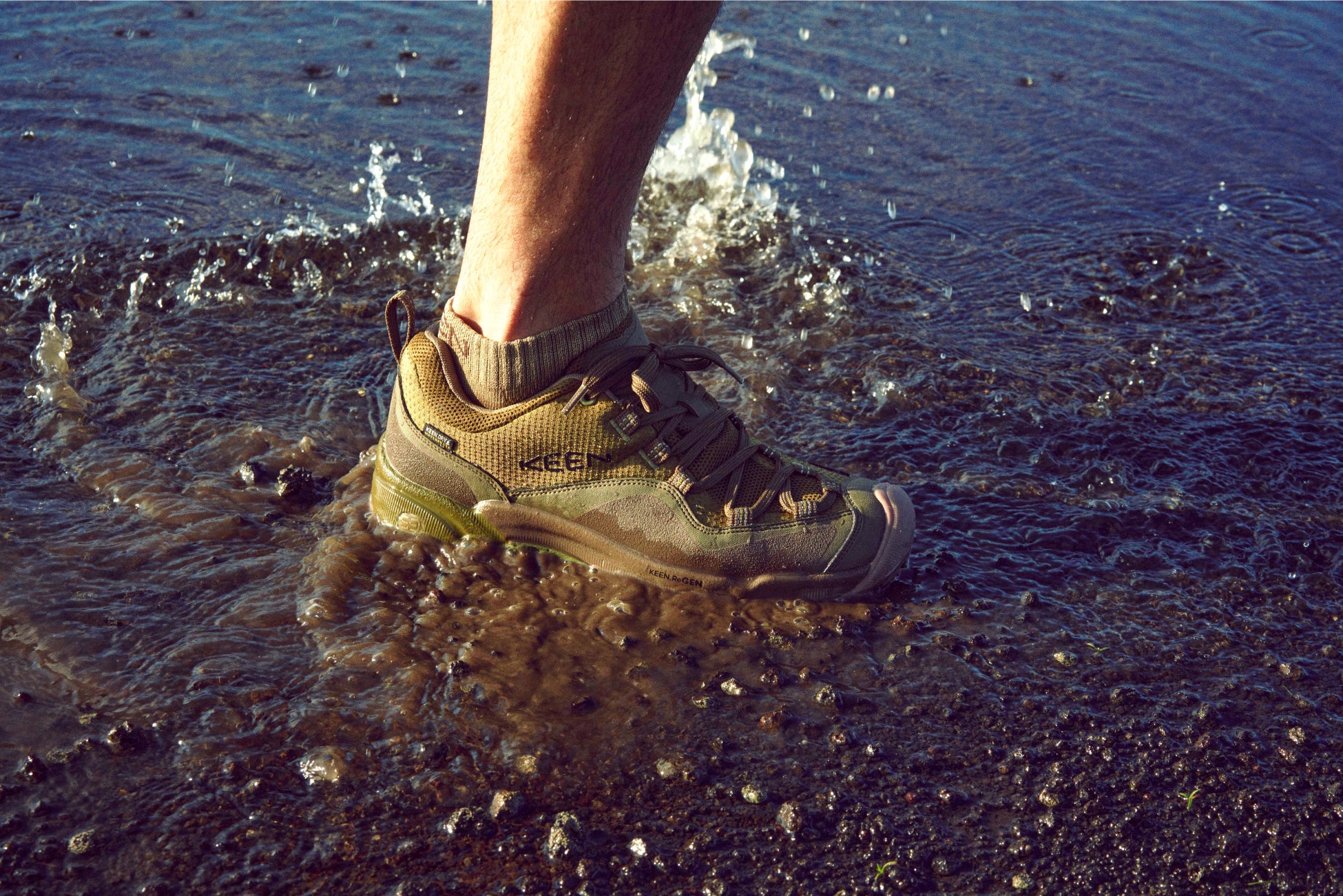 以来、出自や性別、世代を超えて「誰もがいつでもソトを楽しめ、やりたいことを実現できる世界」を目指し、より良い暮らしとソトの冒険へいざなう、オリジナルかつ汎用性あるハイブリッド・フットウェアを提案しています。その機能性・快適性・デザイン性を業界最高水準でアップデートし続ける革新的な製品は、有害物質の排除やリサイクル素材の採用など、環境負荷の低減を推進する<Detox the Planet>のもと製造しています。また、環境保護、気候正義、そして災害支援、ジェンダー平等など社会正義への取り組みを「キーン・エフェクト」と呼び、この活動の推進にコミットしています。
