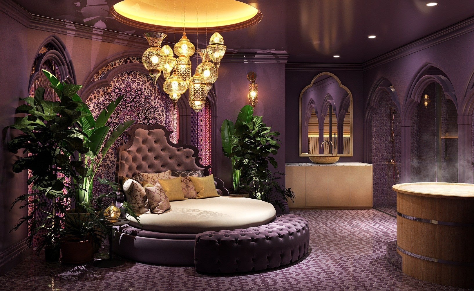 お部屋は、気分やシーンにピッタリなものを選べる全7室。柔らかな曲線と光に包まれ安らぎを感じられる「Silk」や、黄金が煌めくエスニックな「Gold」、リゾート風の開放的なデザインの「Oasis」、まるで秘境のようなエキゾチック雰囲気の「Eden」など、ディテールにこだわり抜いた趣の異なるタイプを用意しました。男女での利用が可能なので、カップルやご家族で一緒に入れるのも魅力。水着のレンタルもあり、写真撮影もSNSへの投稿もOKなので、特別な体験を臨場感たっぷりにシェアできます。