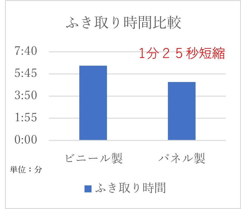 横浜市立市民病院の感染管理認定看護師によるふき取り時間を計測した結果、「車椅子用アイソレーター(陰圧ブース)」の方が1分25秒短縮されました。
