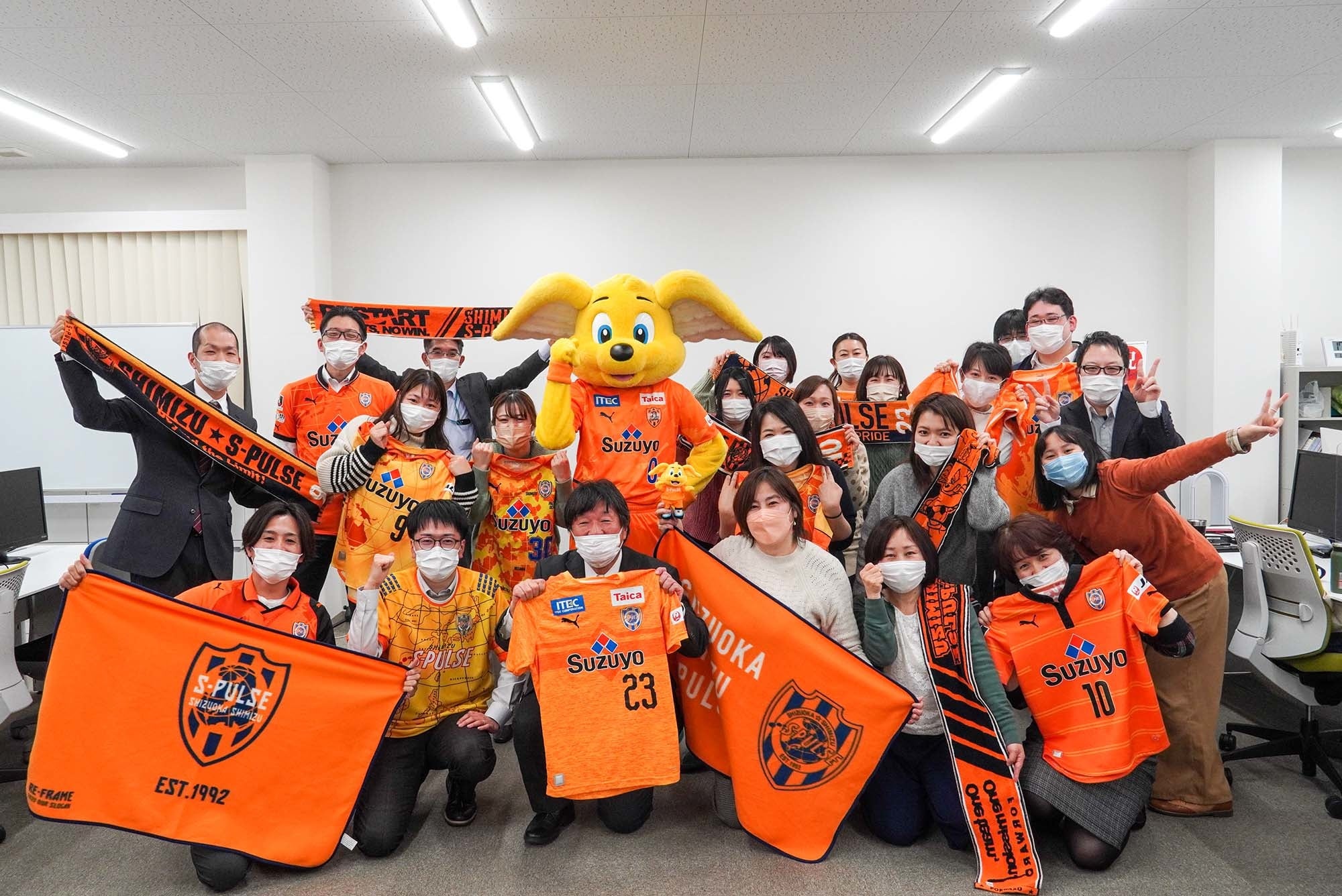 市民クラブとして多くのサポーターに愛されながら、元気と夢を与え続ける清水エスパルス。社員にも多くの熱狂的なサポーターがおり、社内にポスターを掲示したり、パブリックビューイングを開いたりしていました。地域密着でIT活用を支援しているサンロフトも、いつかは会社として応援したいと思っており、今回、その夢が叶いました。