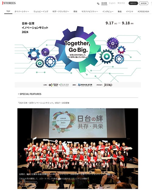 J-STORIESは、世界の問題解決に役立つ日本発のイノベーティブなアイデア、商品、テクノロジーなど様々な分野で進む革新的な取り組みを世界の視聴者や投資家に日英中の3ヶ国語で伝えるオンラインニュース媒体です。弊社では、「2024 日本・台湾イノベーションサミット」のメディアパートナーに就任したことを受けて、当サミットについての記事をイベント前後に渡って掲載いたします。