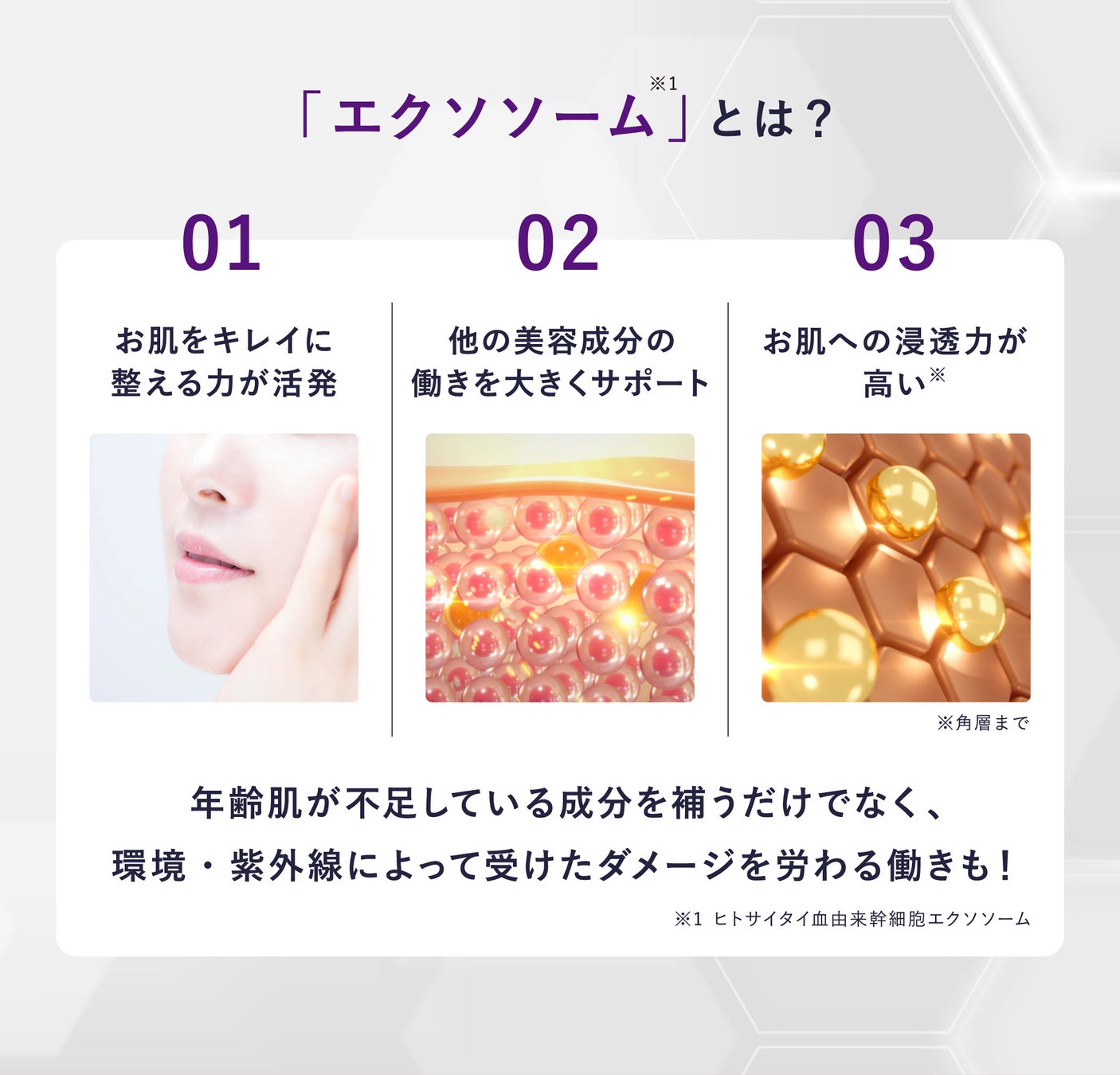 3)ヒト幹細胞エクソソーム*5でうるおい肌をキープ
