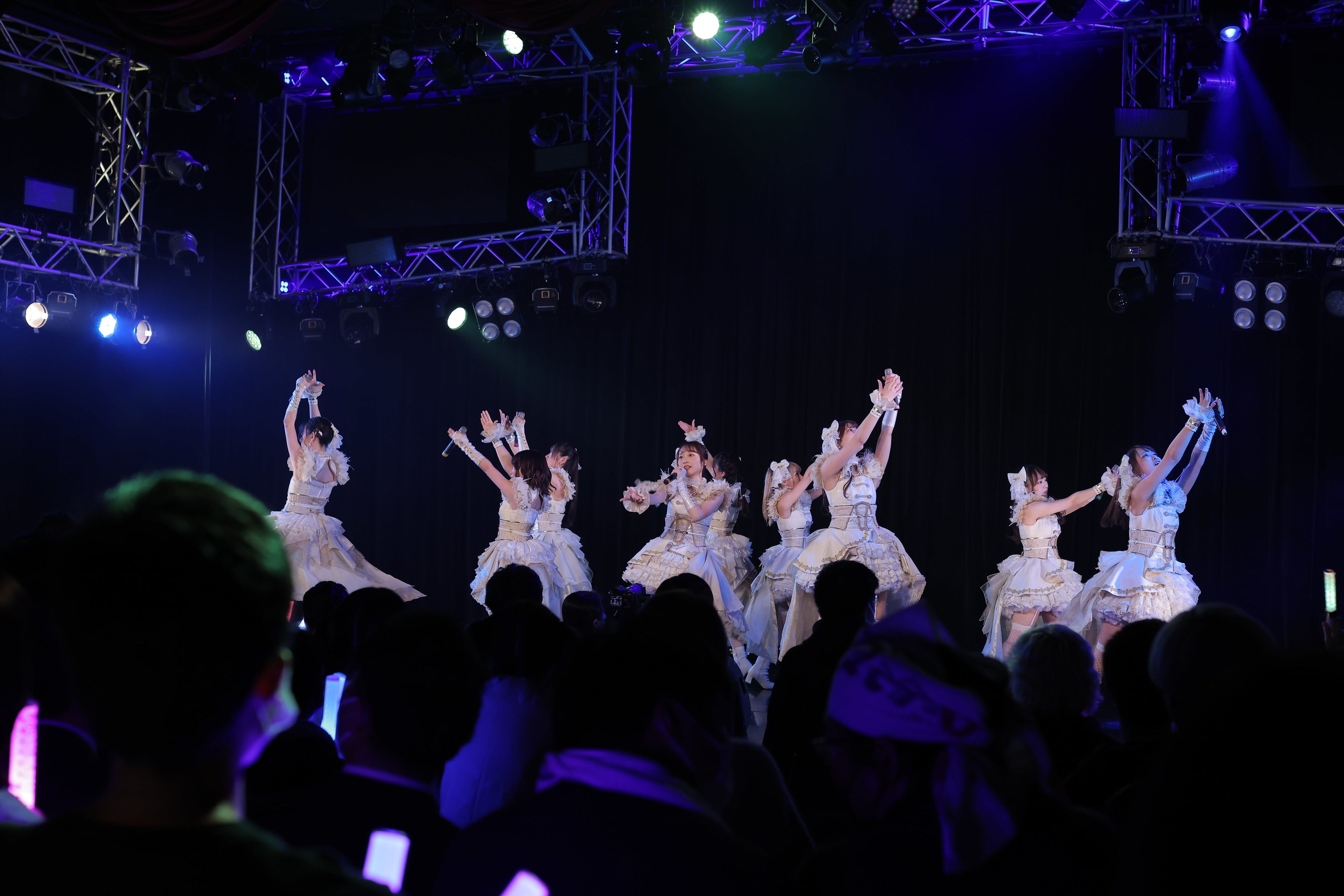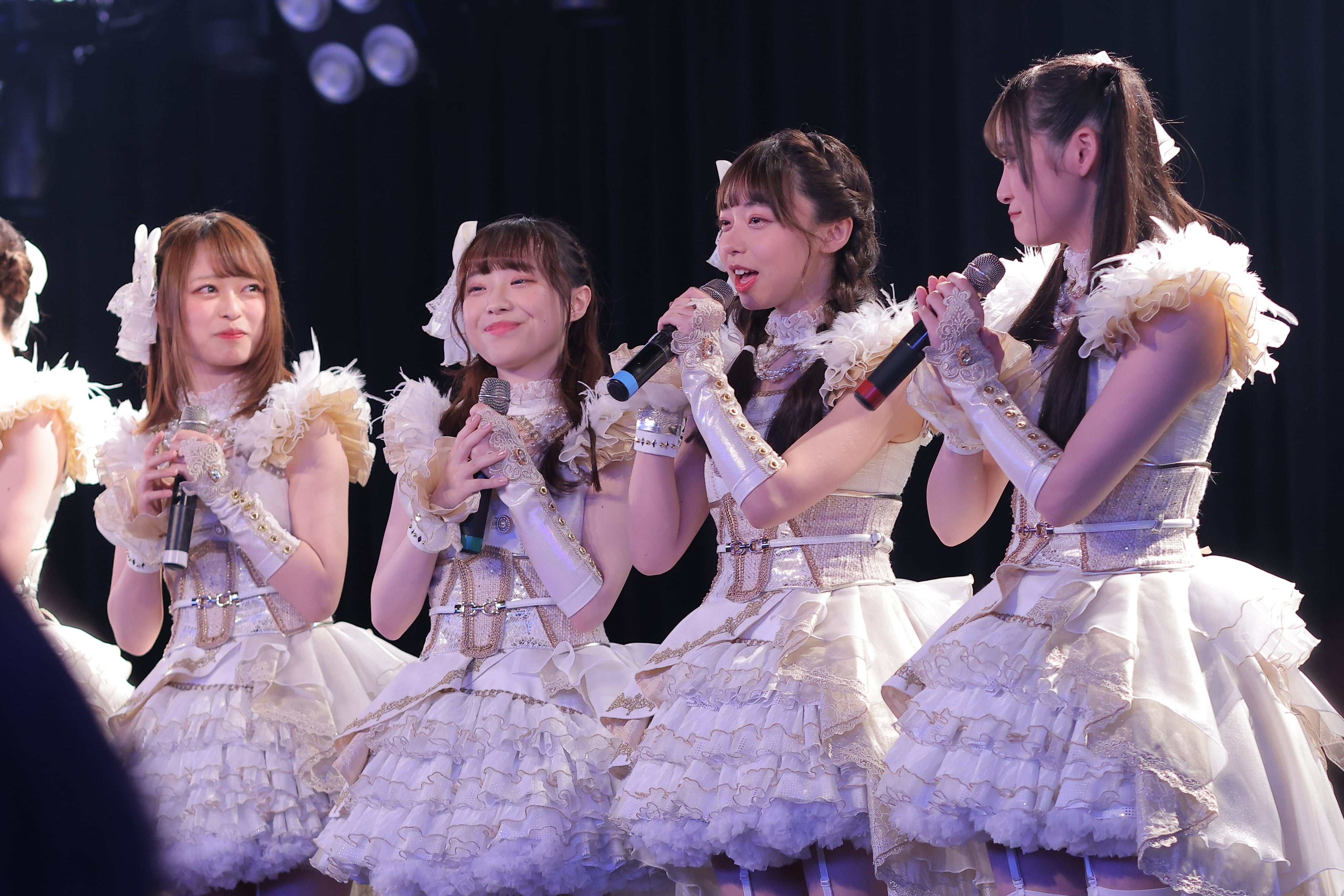 メンバー名、グループ名のお披露⽬からわずか3ヶ⽉という期間でしたが、厳しい歌唱レッスンとダンスレッスンを⽇々重ねて、アイドルとして皆様の前に晴れの姿をお届けすることができました。
