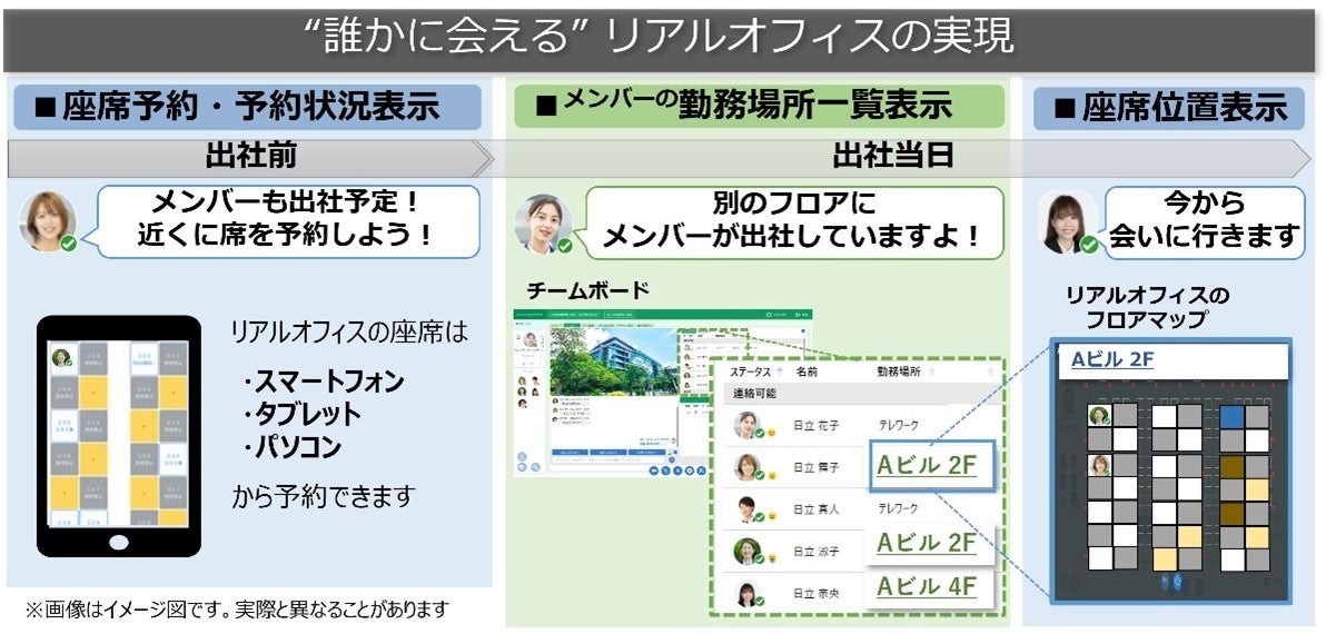 今回提供する機能を利用することで、ハイブリッドワークの浸透によりフロアの縮小やフリーアドレス化が進む新しいオフィスにおいて、対面での会話の機会を増やすことが可能になります。