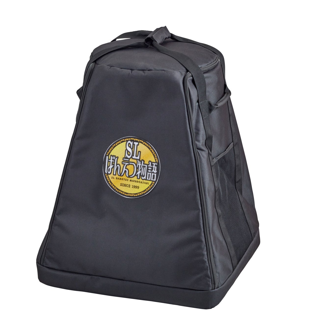 本製品を使用しない時期でも、汚れや傷をつけずに収納できる専用バッグを同封しています。真ん中についている「SLばんえつ物語」のヘッドマークを模した刺繍ワッペンは、職人が手掛けたこだわりの詰まった一品です。