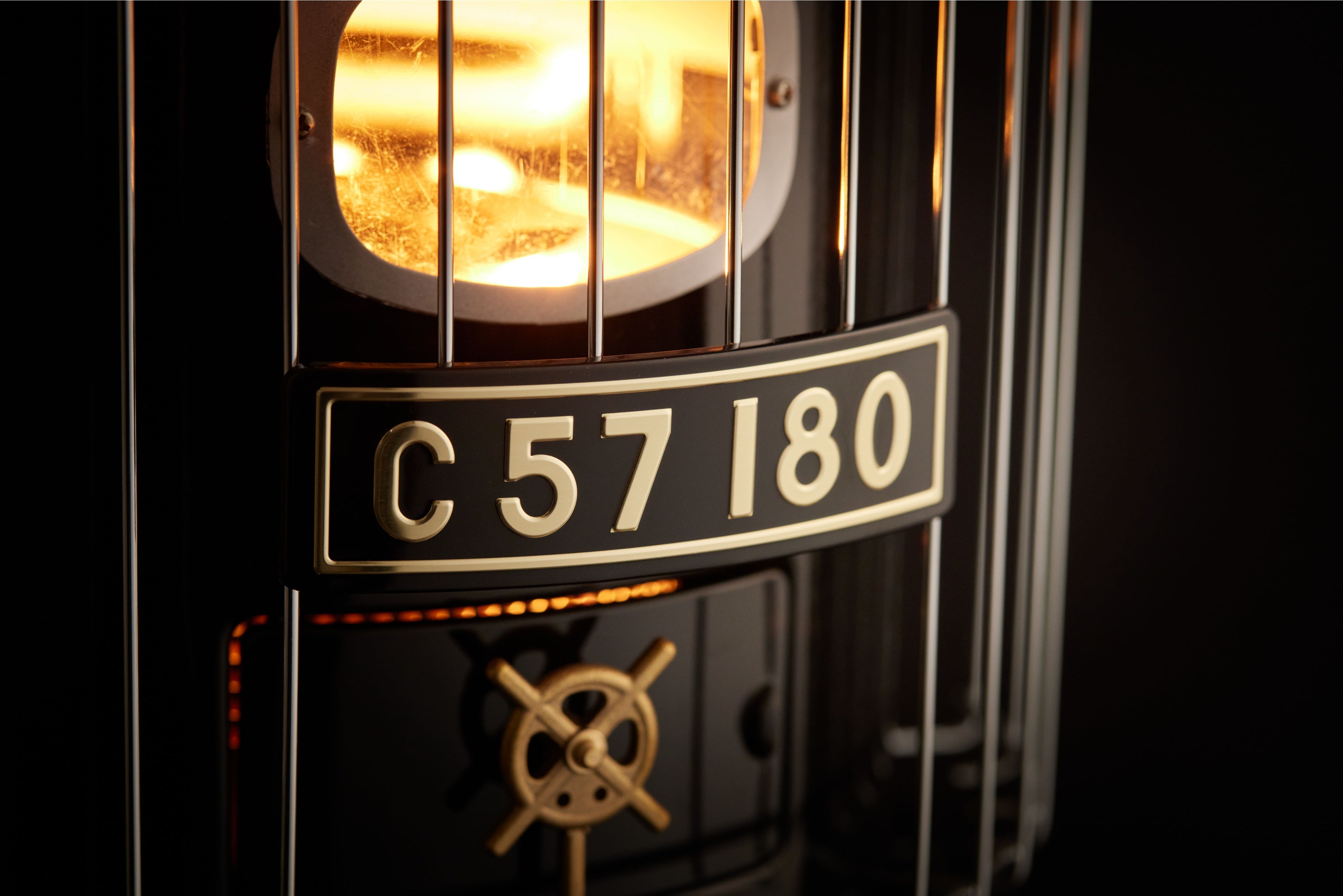 列車と同じ“C57 180”のナンバープレートや素材にこだわった煙室扉ハンドル、ヘッドマークなど、列車の“顔”と呼ばれる部分を忠実に再現しています。さらに、収納に便利な付属の専用バッグや「SLばんえつ物語」のイラストを施した黒い外装箱も、製品以外に楽しめる一つの作品となっています。