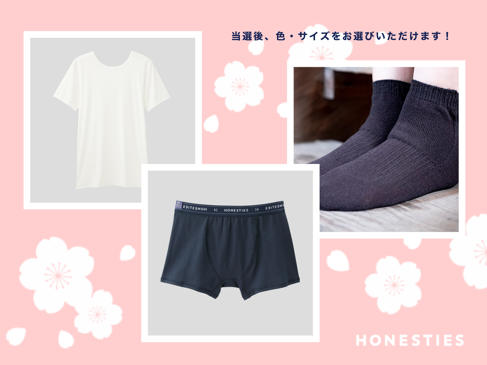 4月は、入学・就職といったタイミングや転職するタイミングの人なども多いと思います。そのような新しい環境に挑戦する方々に、少しでも力になれればと思い、HONESTIESの提供する機能性の肌着を上から下まで、肌着のTシャツ、パンツ、靴下、3点セットでプレゼントいたします!