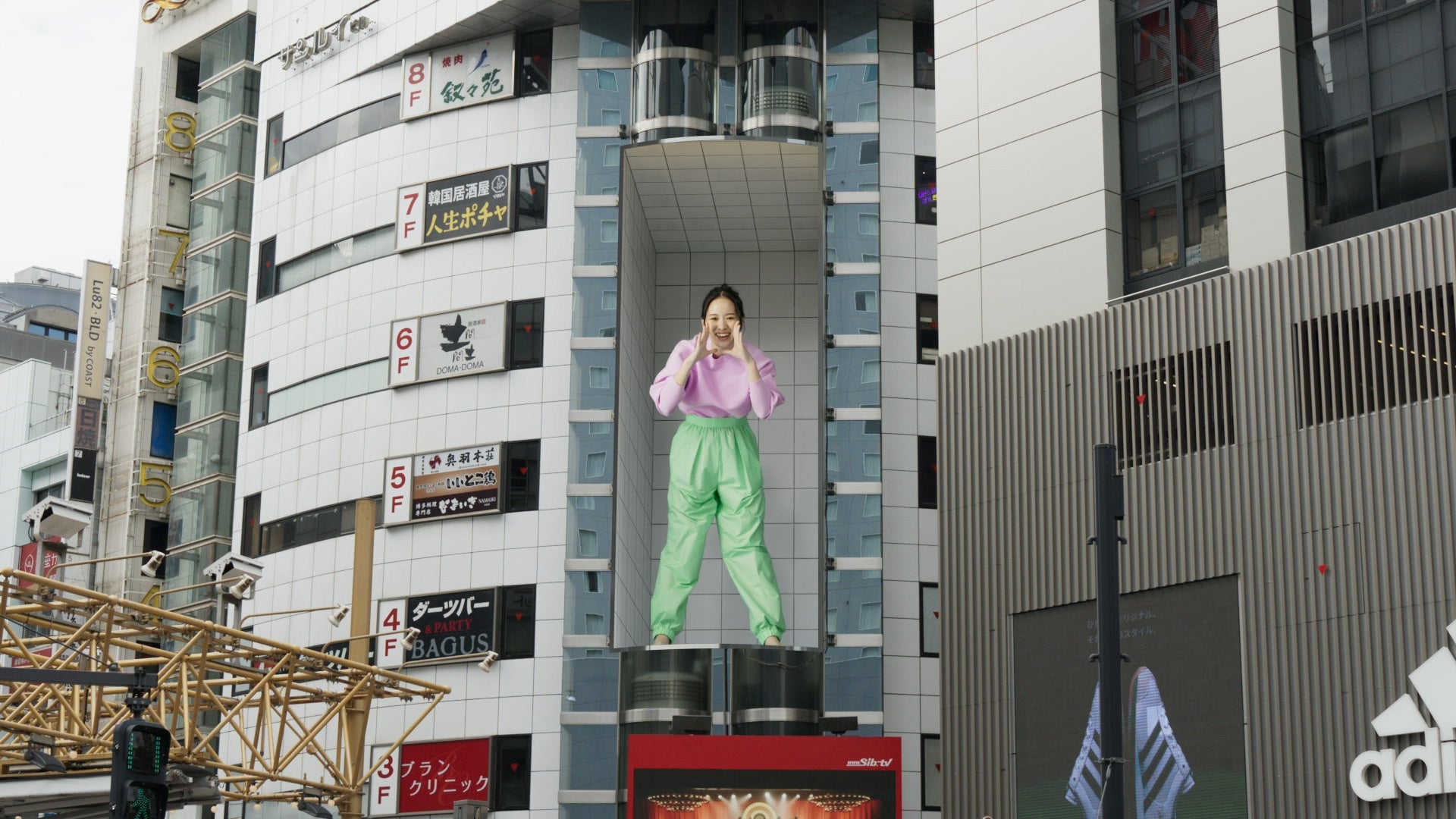 動画コンテンツは、世界で活躍している「株式会社白組」とともに企画・制作。CGで再現した視覚的に立体感のある空間に、巨大な女性が存在するインパクトのある3D映像で、新たなメディアと街行く人とのコミュニケーションを生み出します。