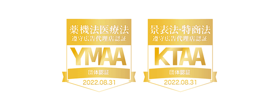 また、薬機法・医療広告ガイドライン尊守のYMAAマークと景表法・特商法尊守のKTAAマークを取得しました。