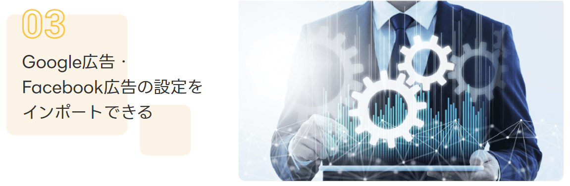 ➂Google広告・Facebook広告の設定をインポートできる