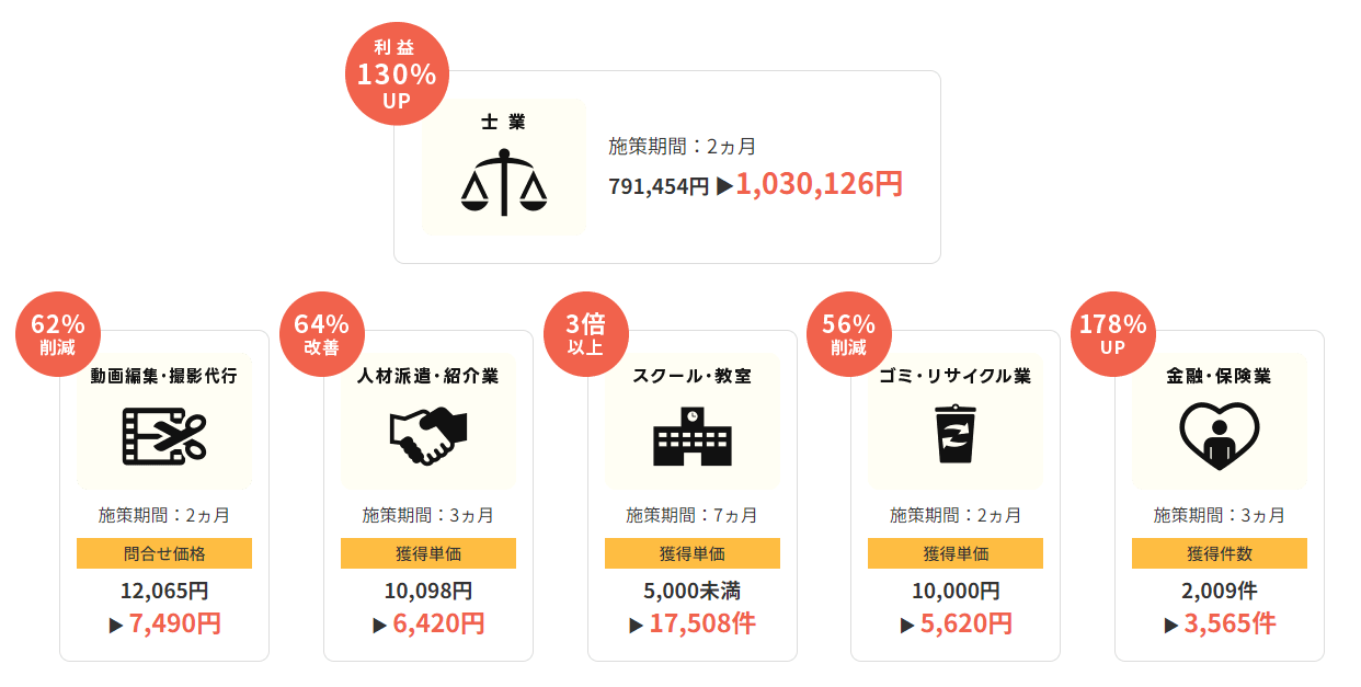 自社のナレッジを基に広告の最適化、クリエイティブを制作し、最適な調整をして配信します。実績があるからこそお客様にも安心して運用をお任せいただいております。