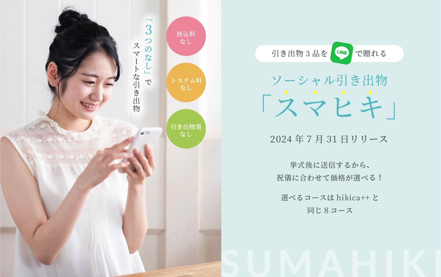 結婚式が終わった後に購入してLINE配信できるサービスを開始!結婚式場で引き出物を渡さずに、挙式後にソーシャルギフトとしてスマホから贈れるソーシャル引き出物『スマヒキ』がついに登場!