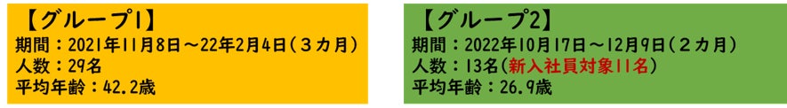 グループ1:29名<社内公募による参加希望者> ※トライアル期間のため3カ月のサービス利用