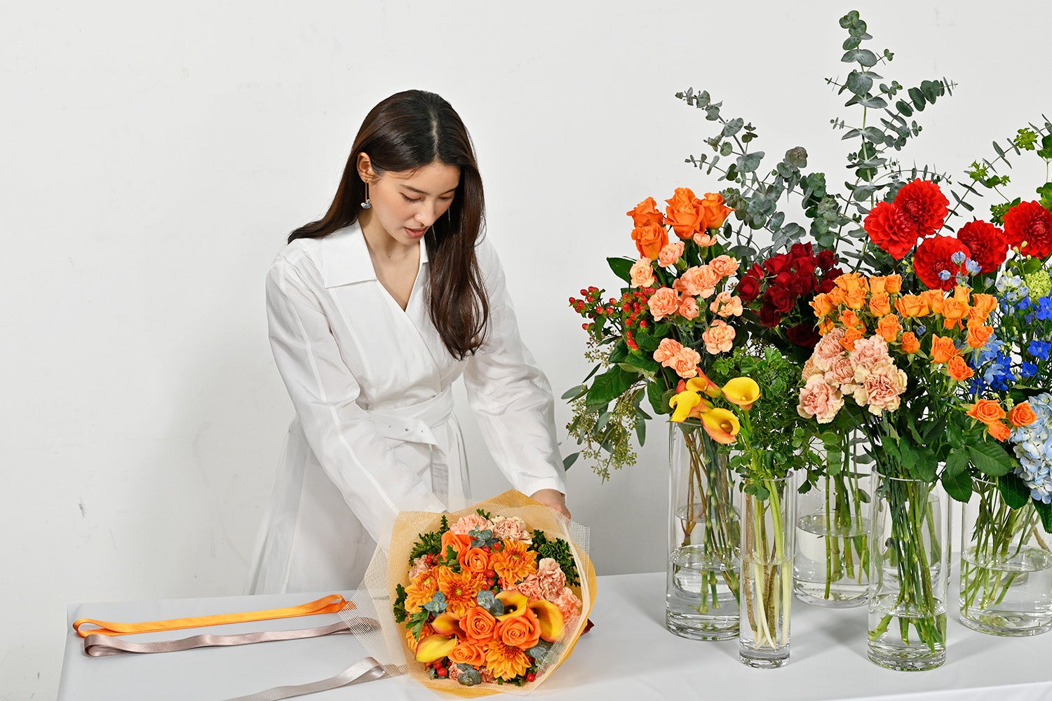花束をデザインした感想を尋ねると「お花が大好きで、普段から花店に行ってよく花を選ぶことがあるので、本当に楽しかったけれど、花束のデザインを考えるのはとても難しかった。お花屋さんってすごいなと思いました」とのことでした。
