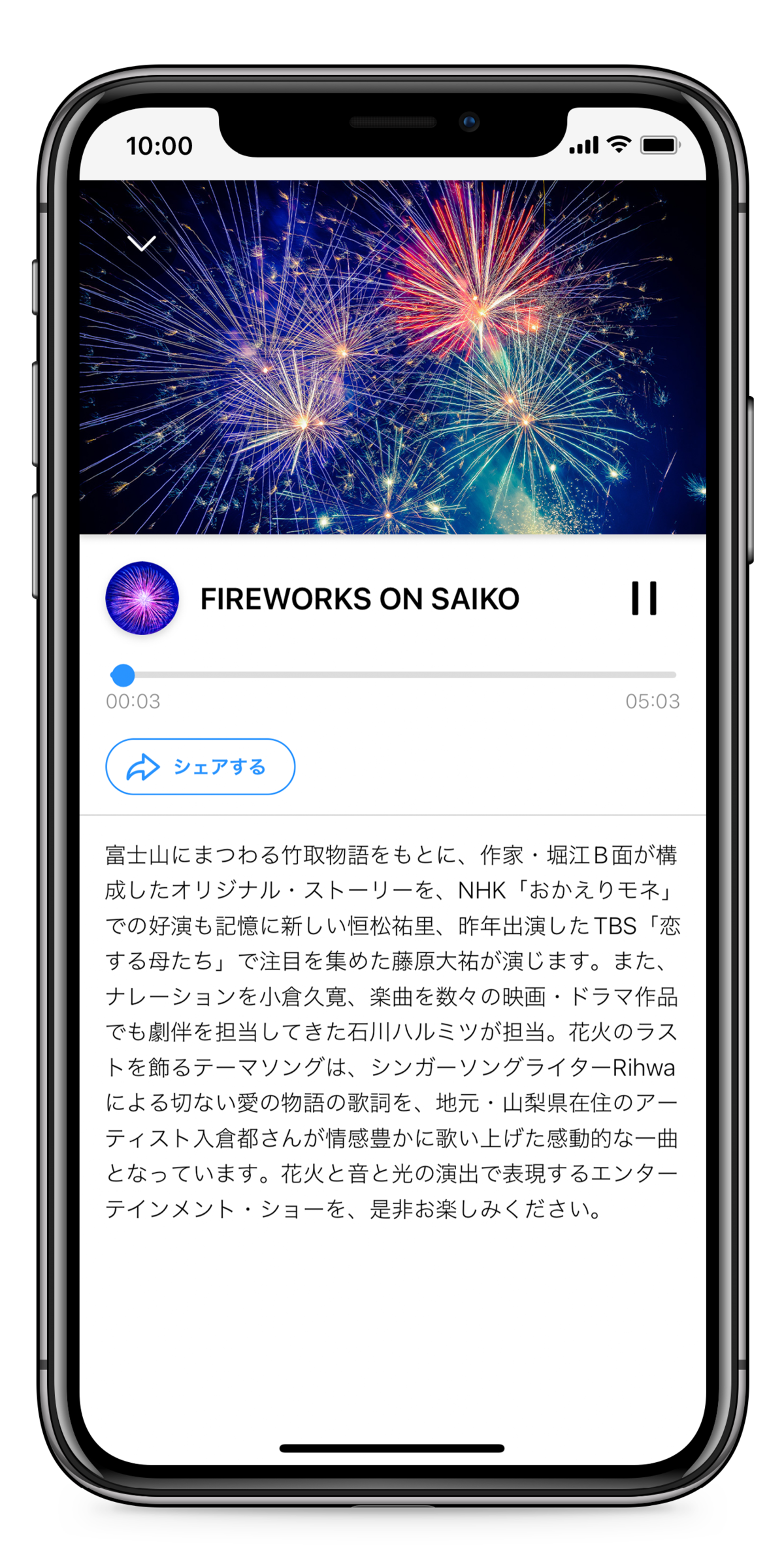Sound AR™アプリ「Locatone™」を使い、花火のストーリーと音楽が楽しめるコンテンツを「FUN OUT! ~ FIREWORKS ON SAIKO ~」にて提供!