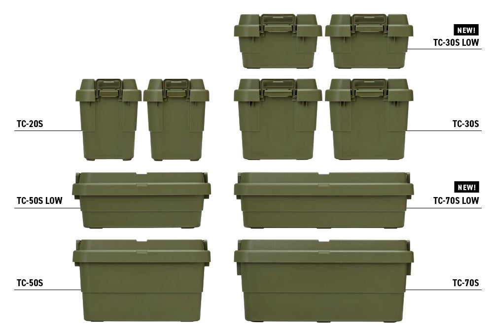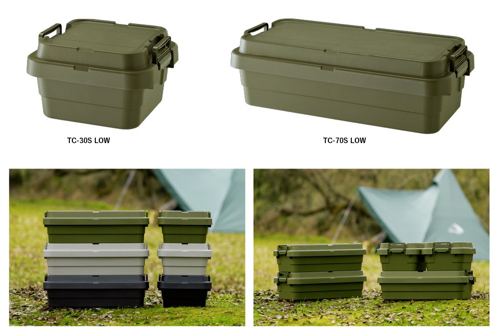 シンプル・無骨なデザインで使い勝手が良いとキャンパーに人気のキャンプ収納「トランクカーゴ」シリーズ。2021年に登場した新モデルのロータイプは多くのキャンパーから支持をされています。今回、サイズバリエーションを増やして欲しいというニーズや、荷物をよりコンパクトに持ち運びたいというニーズに応え、新サイズ「TC-30S LOW」と「TC-70S LOW」の2サイズを発売します。