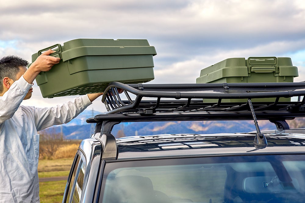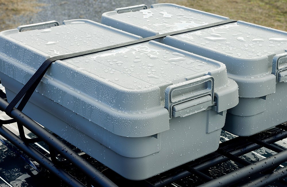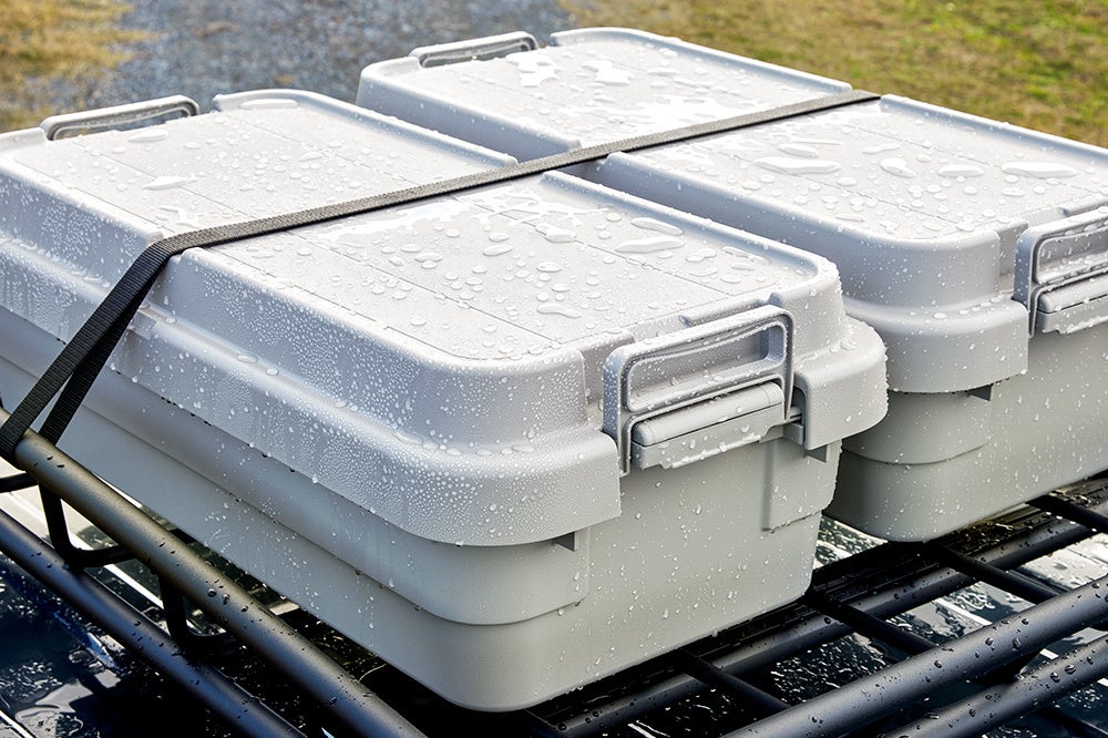 雨やほこりが入りにくいフタ構造で、急な雨でも大事な荷物を守れます。( 完全防水ではありません。)