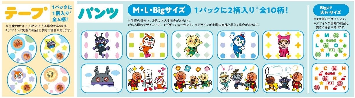 サイズ別にアンパンマンといろいろな“なかまたち”が登場する明るく楽しいデザイン