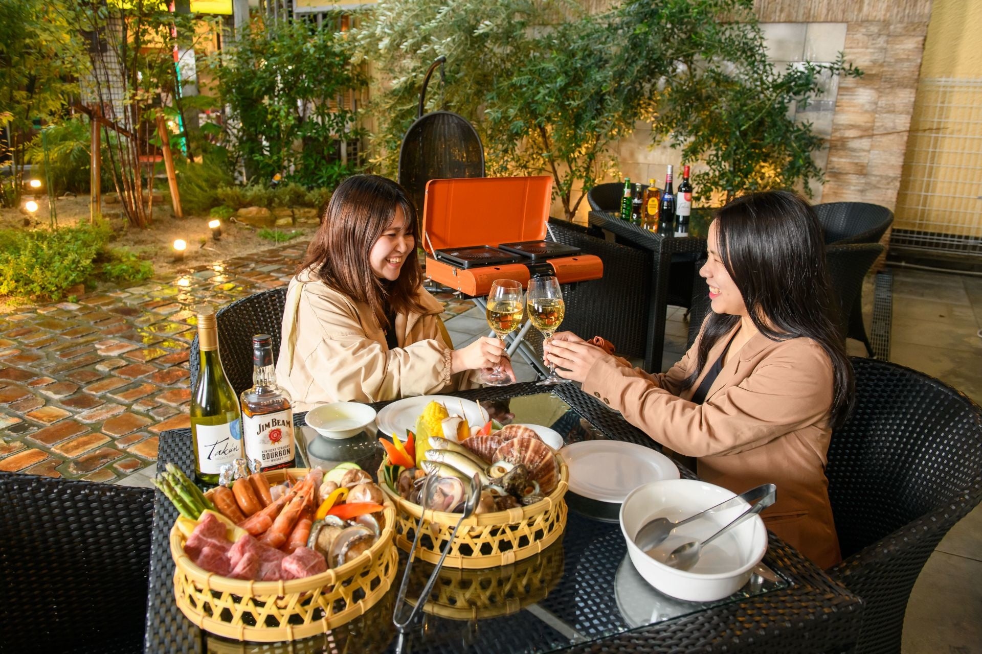 ソビアルでは、ランチ/ディナーの時間帯でガーデンテラスや屋内レストランでBBQが楽しめます。木津市場直送の海鮮BBQ¥5800やお肉BBQもご用意しております。(ご予約制)