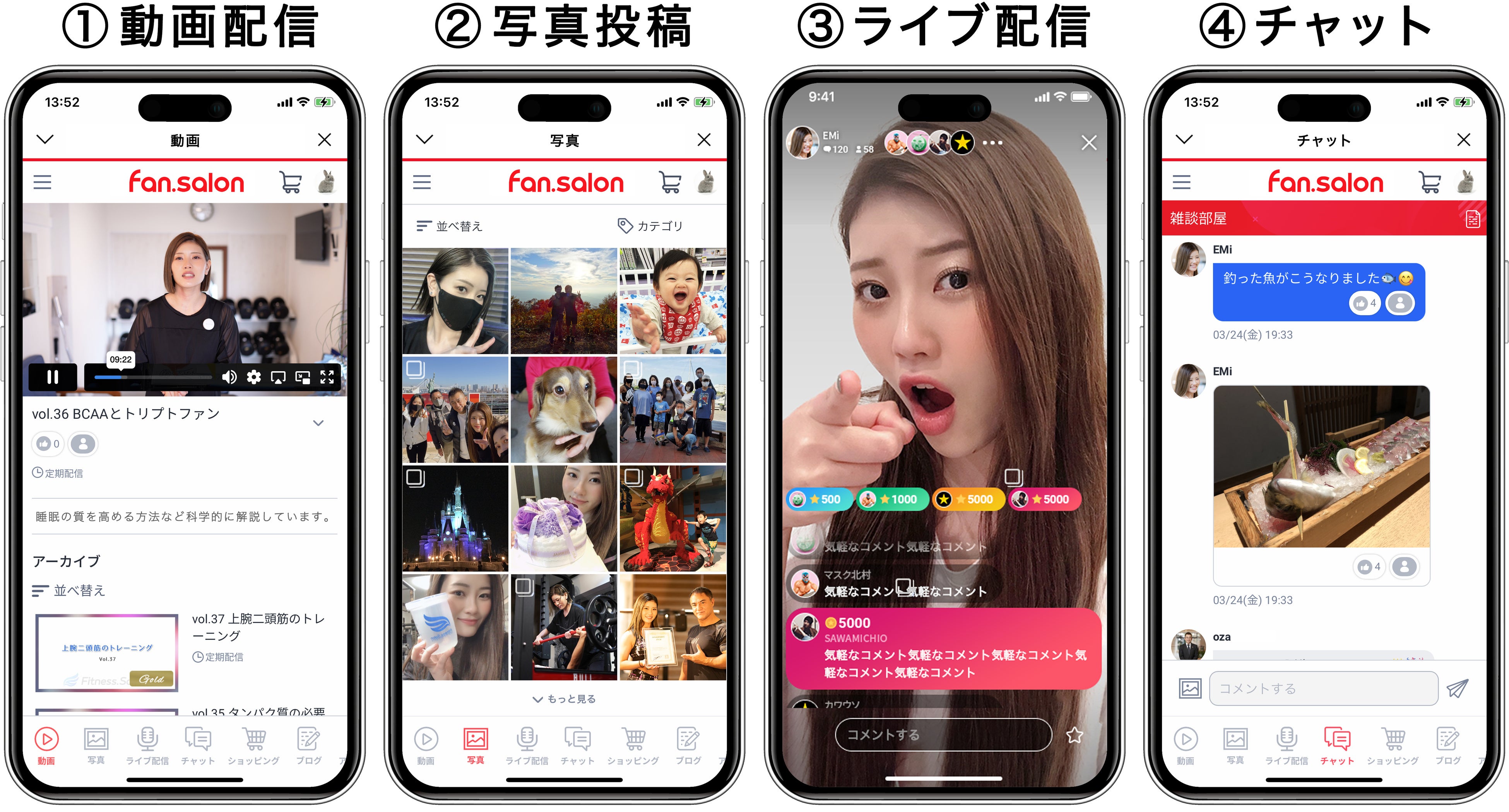 ③ 独自のオンステージ機能・ライブコマース機能を持ったfan.salonだけの「ライブ配信」