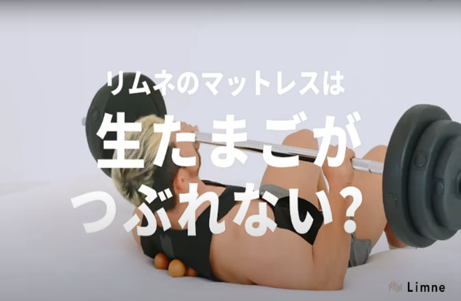 株式会社LIMNEはマットレスや枕などの寝具の素材を独自開発し、2020年8月よりインターネット販売を行ってきました。マットレスに置いた生卵の上でベンチプレスする動画がSNSで話題になり、2月に関西のテレビ番組で紹介され問い合わせが殺到した「Limne the Mattress リムネ ザ マットレス」。