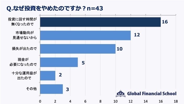 やめた理由は「時間が無くなった」「市場動向が見通せない」「損失が出た」